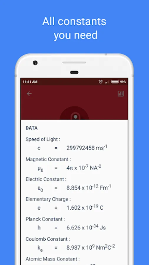 A datasheet for all the constants that matters most and needy. This is a useful tool which you can quickly look to the physical constants to solve your homework or revise your memory.