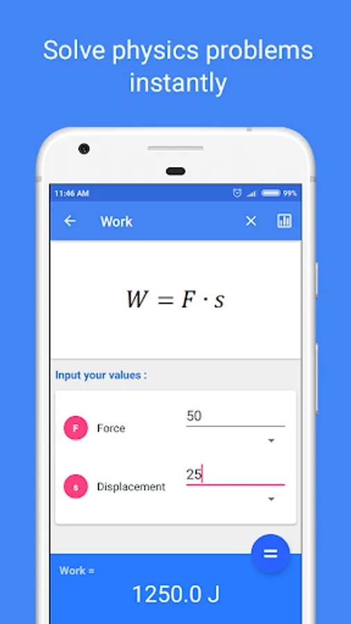Physics Pro is the best physics app available on android. This app provides free physics topics, definitions, formulas and a beautiful formula calculator in your pocket. It helps you to refresh your knowledge, prepare for exams, solves your physics homework and increase your knowledge.