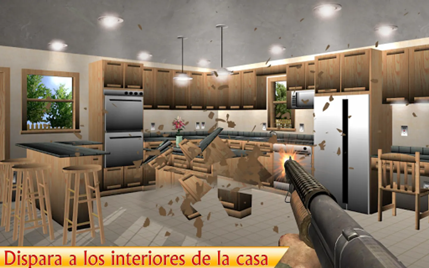 Destroy and smash the house interior with guns