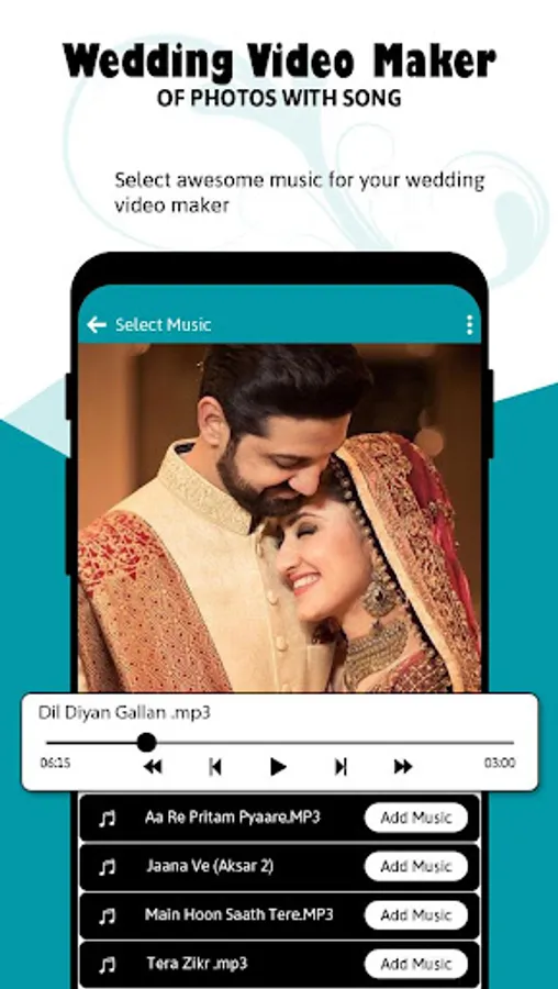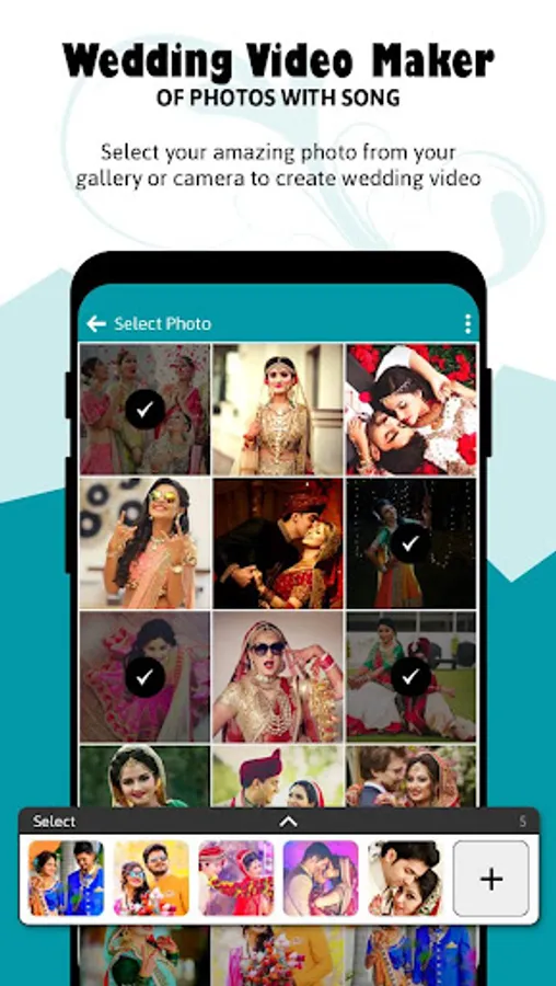 wedding video maker with music collects your photos and transforms them into stunning videos with music and wedding frames.