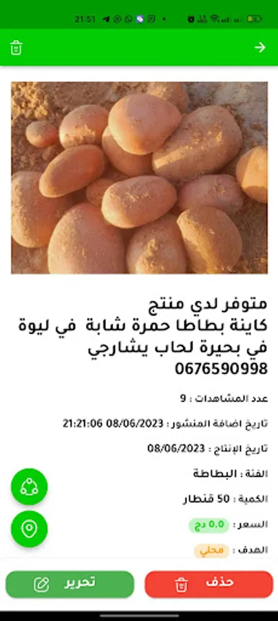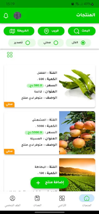 "My Country's Farmer's Product" is a key to effective cooperation between the agricultural sector and business, as it provides an easy-to-use and safe platform for farmers to display and market their products directly. Through the application, farmers can display a wide variety of agricultural products, including vegetables, fruits, dates, plants, trees...etc.