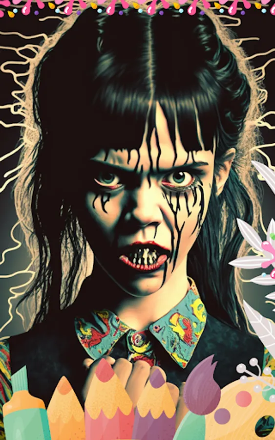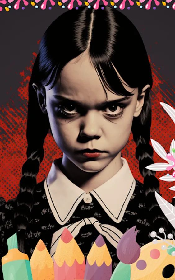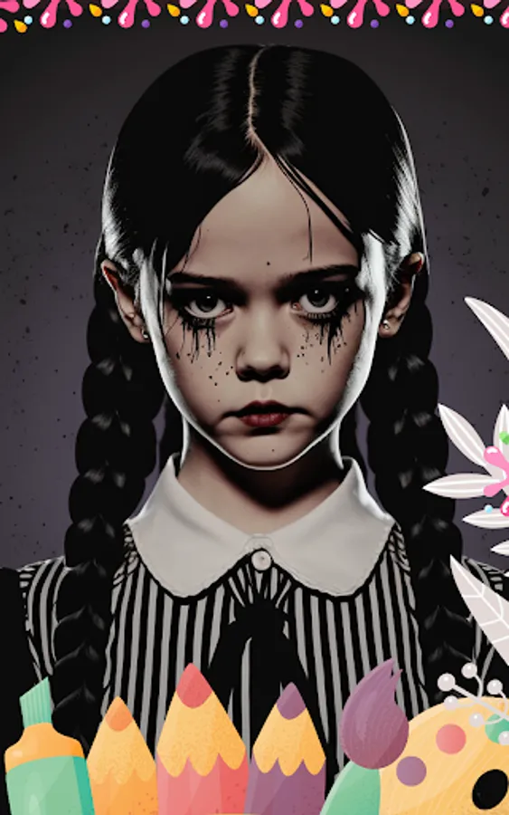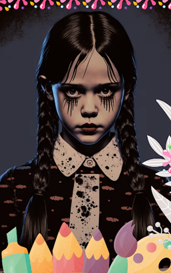This game is guaranteed to put a smile on your face because it has more than 40 spooky and cool Wednesday Addams coloring pages. It is simple to use, comes in more than 80 different pencil colors, and is even accessible in three other languages. Additionally, you may use it offline and Chapter 1 is completely free! When you're finished, you can even save and distribute your works to others. Take advantage of this fantastic chance to play the Wednesday Addams: Coloring Book game by playing it right now. Try it today!