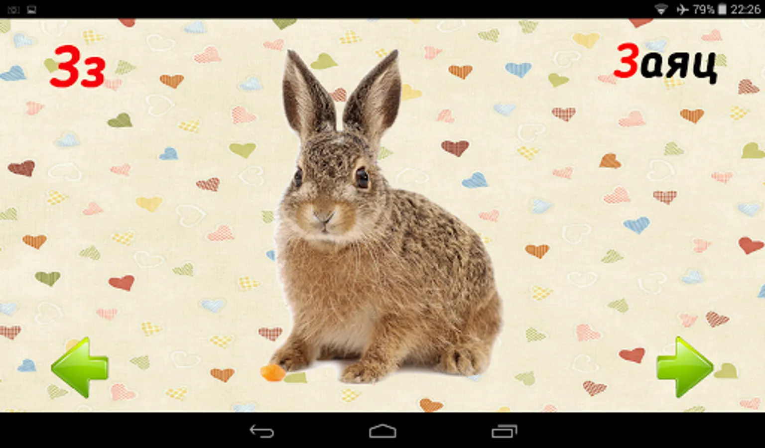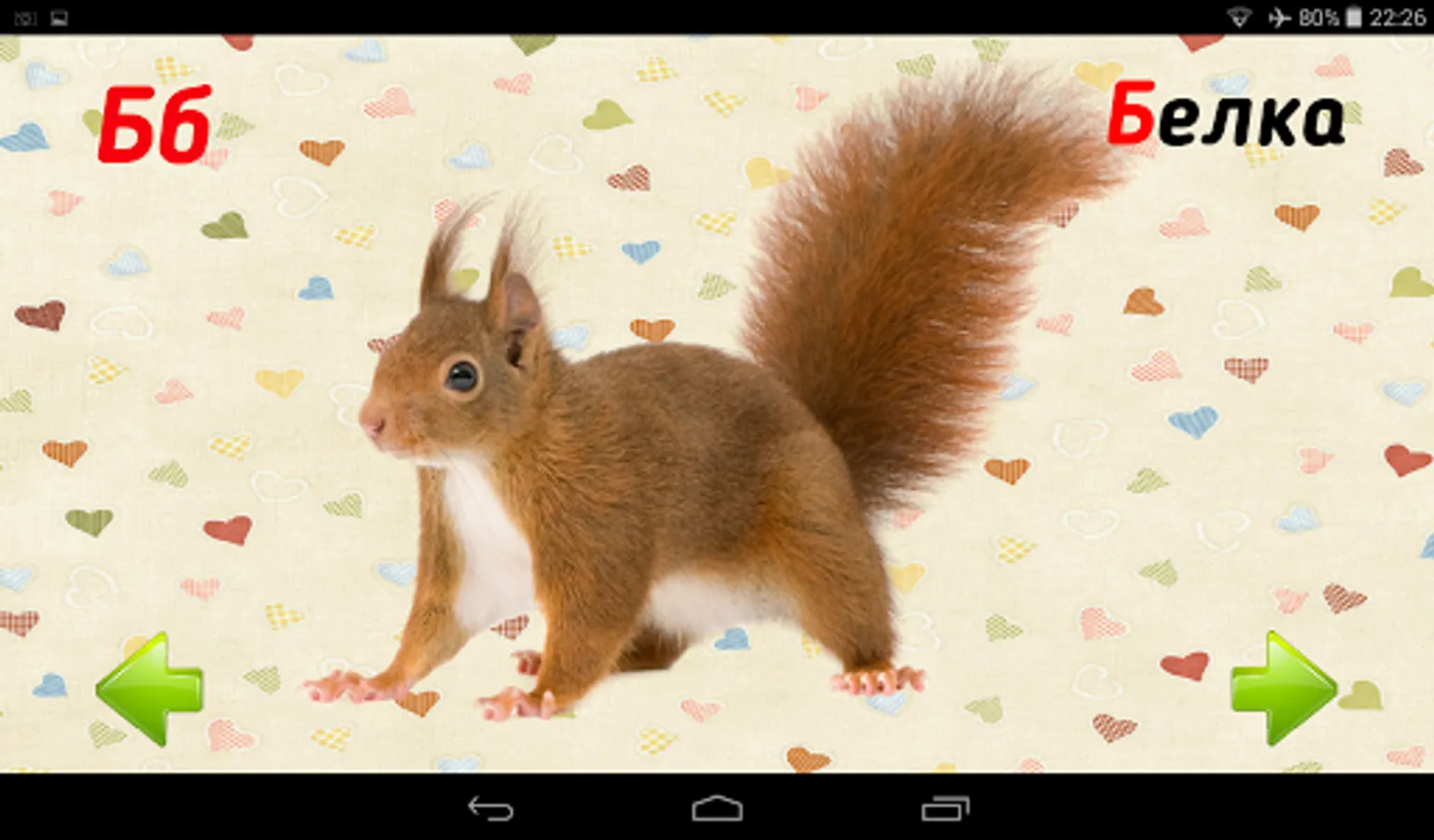 This app is designed for children from three years, which for the first time to find letters of the alphabet. Bright and natural pictures of animals will help to memorize the Alphabet in a light, playful way. When learning the Alphabet with the help of this application you will need the help of parents who at the right moment will be able to improve the child or prompt him if he forgot the name of any animal. The app allows you to expand the idea of the child about the animals and contributes to the accumulation of vocabulary and General development of the child.