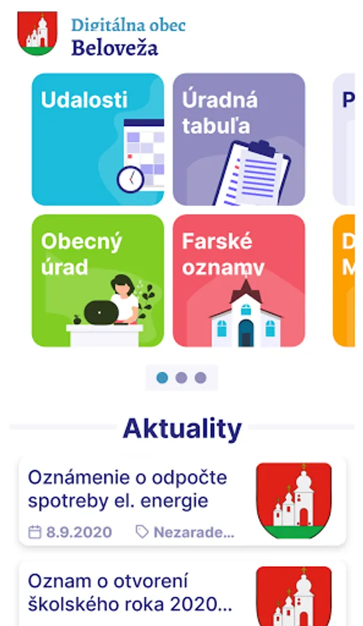 In one place news, events, information from the municipal office, weather, parish announcements, suggestions, sending important notifications and all other information for the citizen.