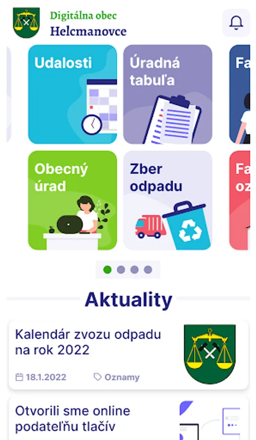 In one place news, events, municipal information, weather, waste collection calendar, parish announcements, history, suggestions, photo gallery, useful instructions, sending important notifications and all other information for the citizen.