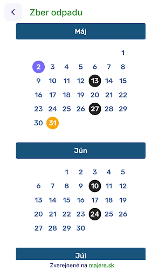 We are working hard to prepare additional features and improvements for you. The source of general information is the official website of the municipality majere.sk