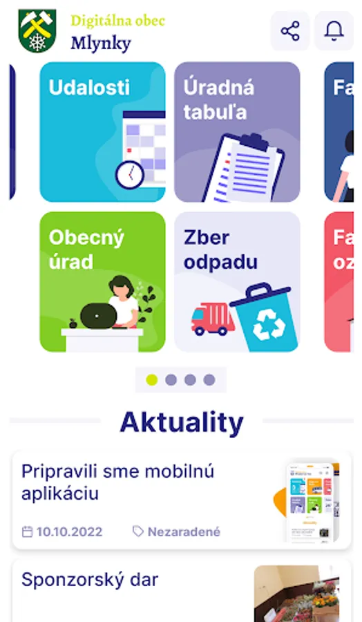 In one place news, events, information from the municipal office, weather, waste collection calendar, parish announcements, history, suggestions, photo gallery, useful instructions, sending important notifications and all other information for the citizen.