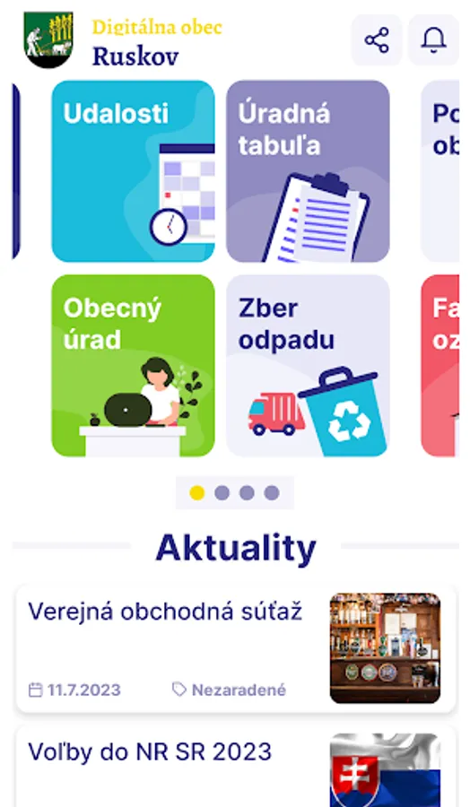 In one place news, events, information from the municipal office, weather, waste collection calendar, history, parish announcements, photo gallery, suggestions, useful instructions, sending important notifications and all other information for the citizen.