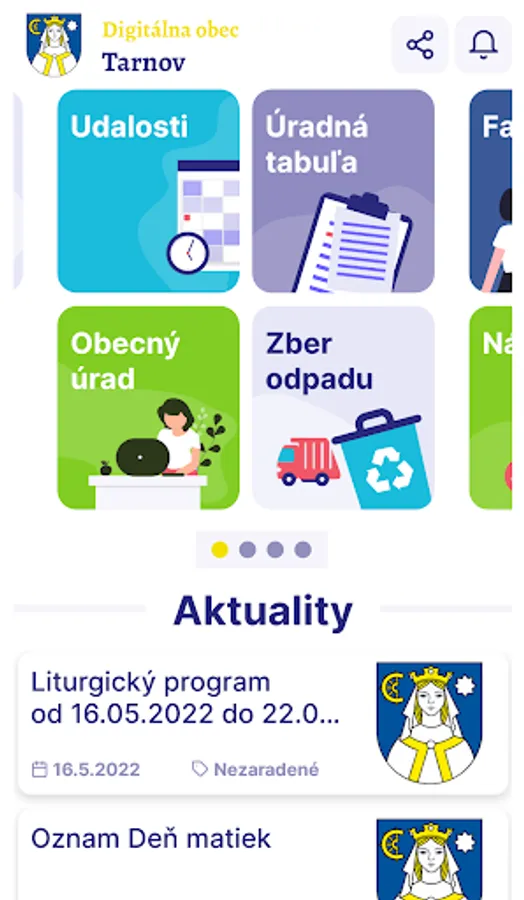 In one place news, events, municipal information, weather, waste collection calendar, parish announcements, history, suggestions, photo gallery, useful instructions, sending important notifications and all other information for the citizen.