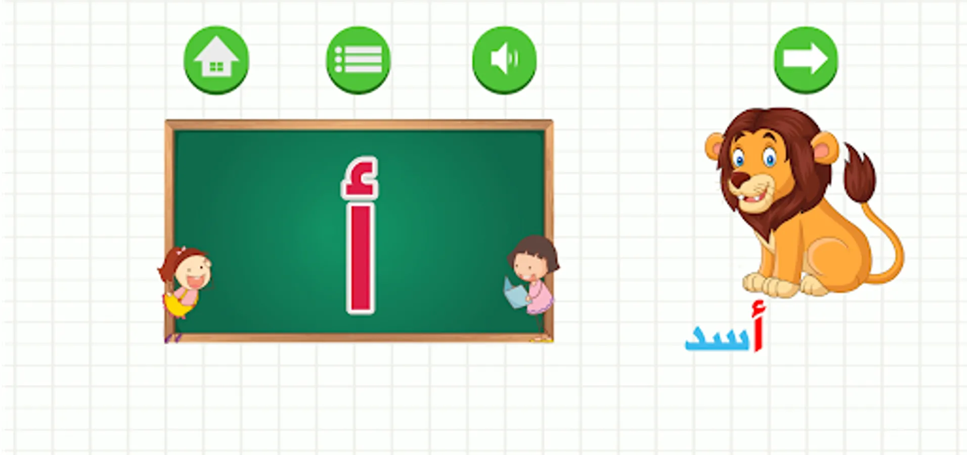 Teaching letters in a fun and interesting way that enables the child to learn to write and pronounce Arabic letters easily and also learns many Arabic words, which enables the child to learn the Arabic language with ease and without getting bored