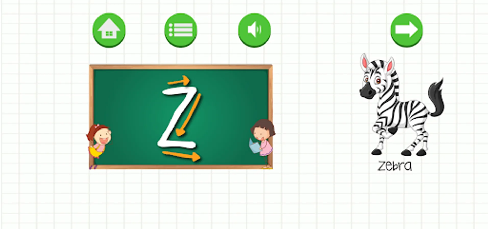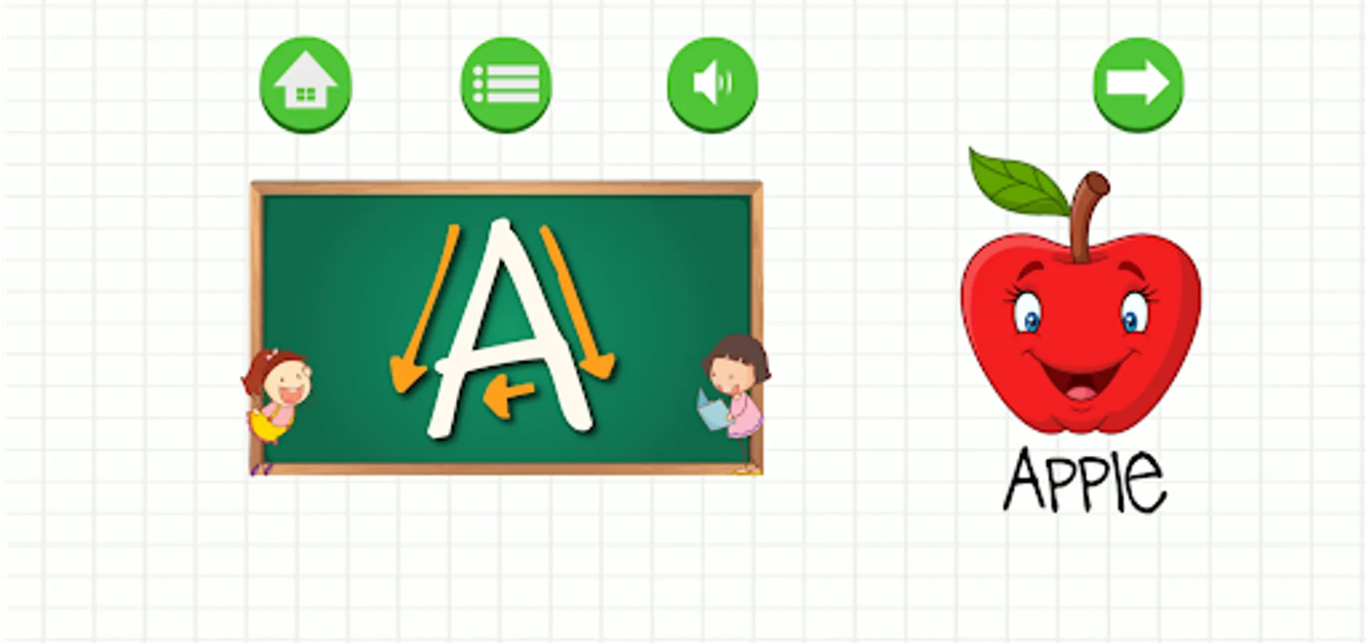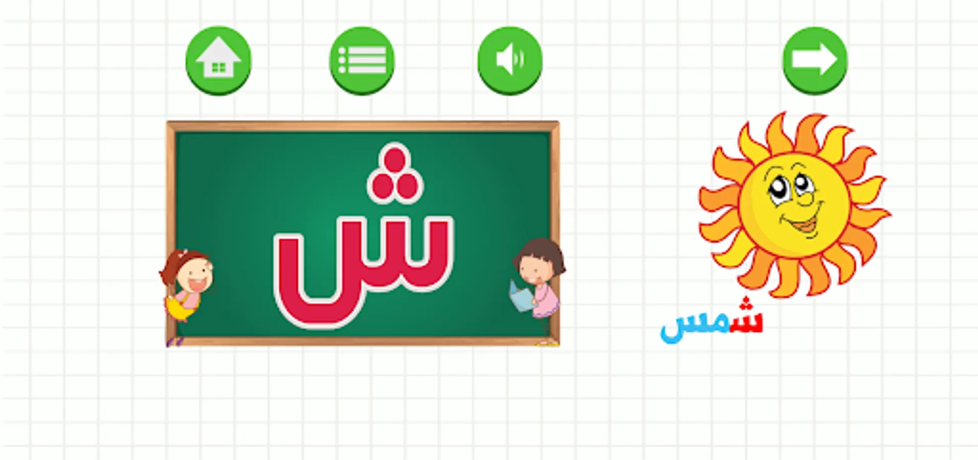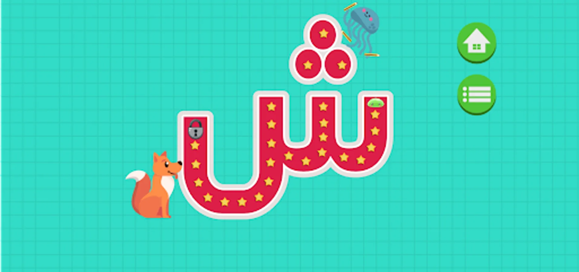 The app is a fun interactive educational game. It aims to teach children to read, write, Arabic letters and English letters