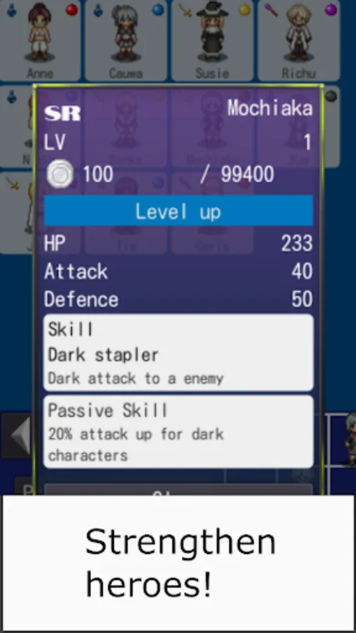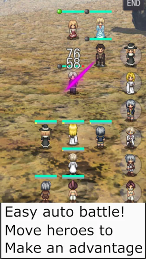 Formation Battle is a simple and casual RPG. Collect heroes by summon and create a party. Form a formation on stages and battle.