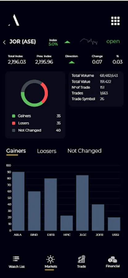 يتيح التطبيق للمستثمرين القيام بعمليات التداول، والاستفادة من قراءة معلومات السوق بشكل لحظي، وتفقد الرصيد النقدي وملكية الأسهم، وإنشاء قائمة للأسهم المفضلة لدى العميل.