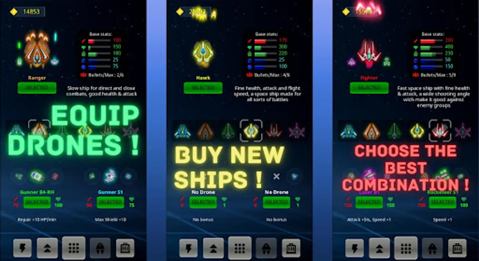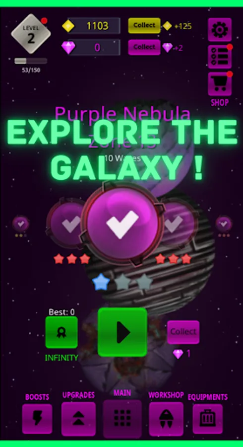 With ambition to dominate the galaxy, you are exploring space collect all the precious resources.