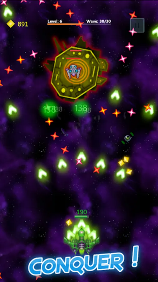 Join Galaxy Shooter today and become an ace pilot to protect earth from waves after waves of aliens! Control the lone spaceship, shoot down each formation of aliens, and prevent the enemy forces from destroying all of mankind now!