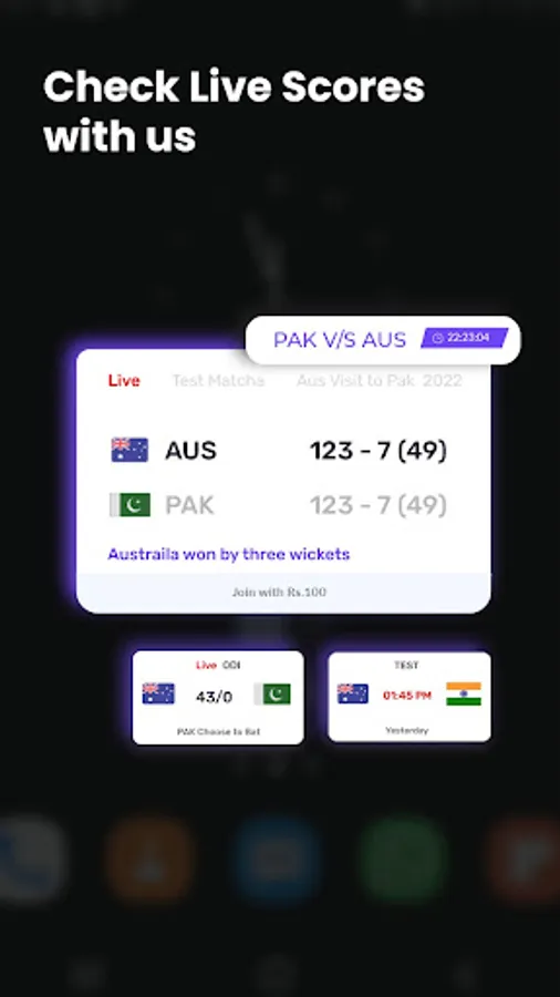 In our app we are providing free live cricket scores update in your mobile with one touch so you can enjoy free sports leagues and get live scores from matches.