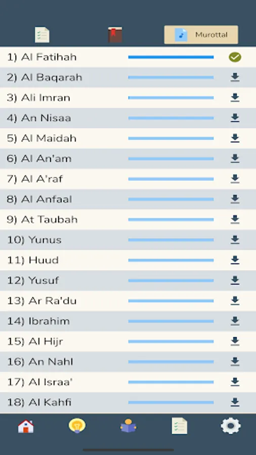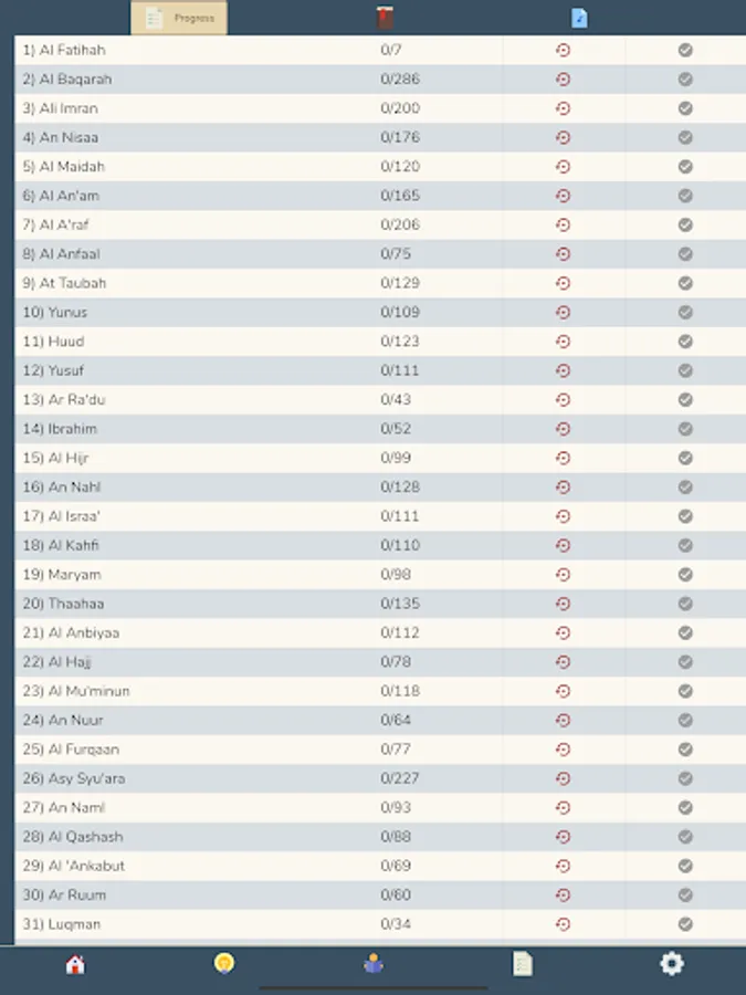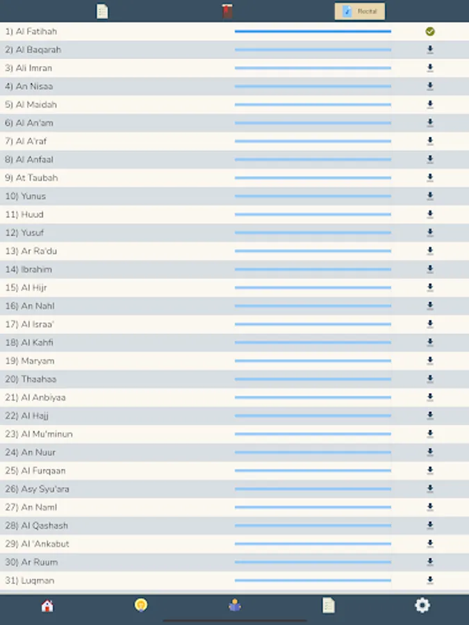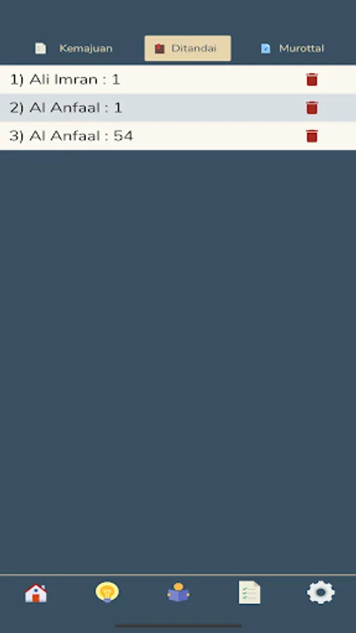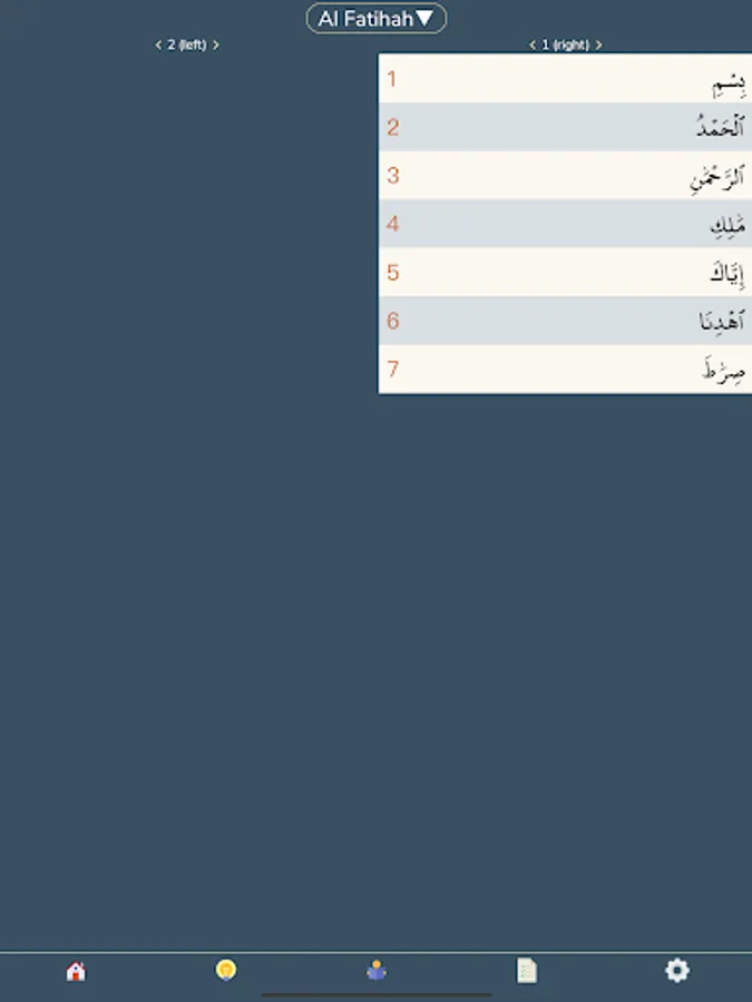 For this feature, we adopted Al-Qur'an At Taisir Ustadz Adi Hidayat, Lc., M.A. Our screen is divided into two (left and right) which are representations of the Mushaf in general. So that we not only memorize the verses, but also the location of the Mushaf. In this feature, each verse will be represented by the first word in the verse.