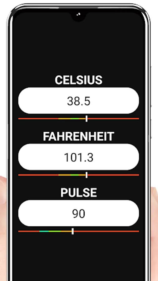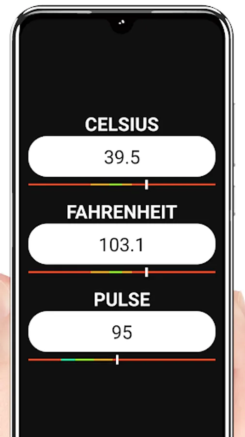 This Body Temperature Fever Color App is created for your body temperature and pulse values with different sliders and different color areas and does not measure your body temperature and pulse. All result values are random generated!