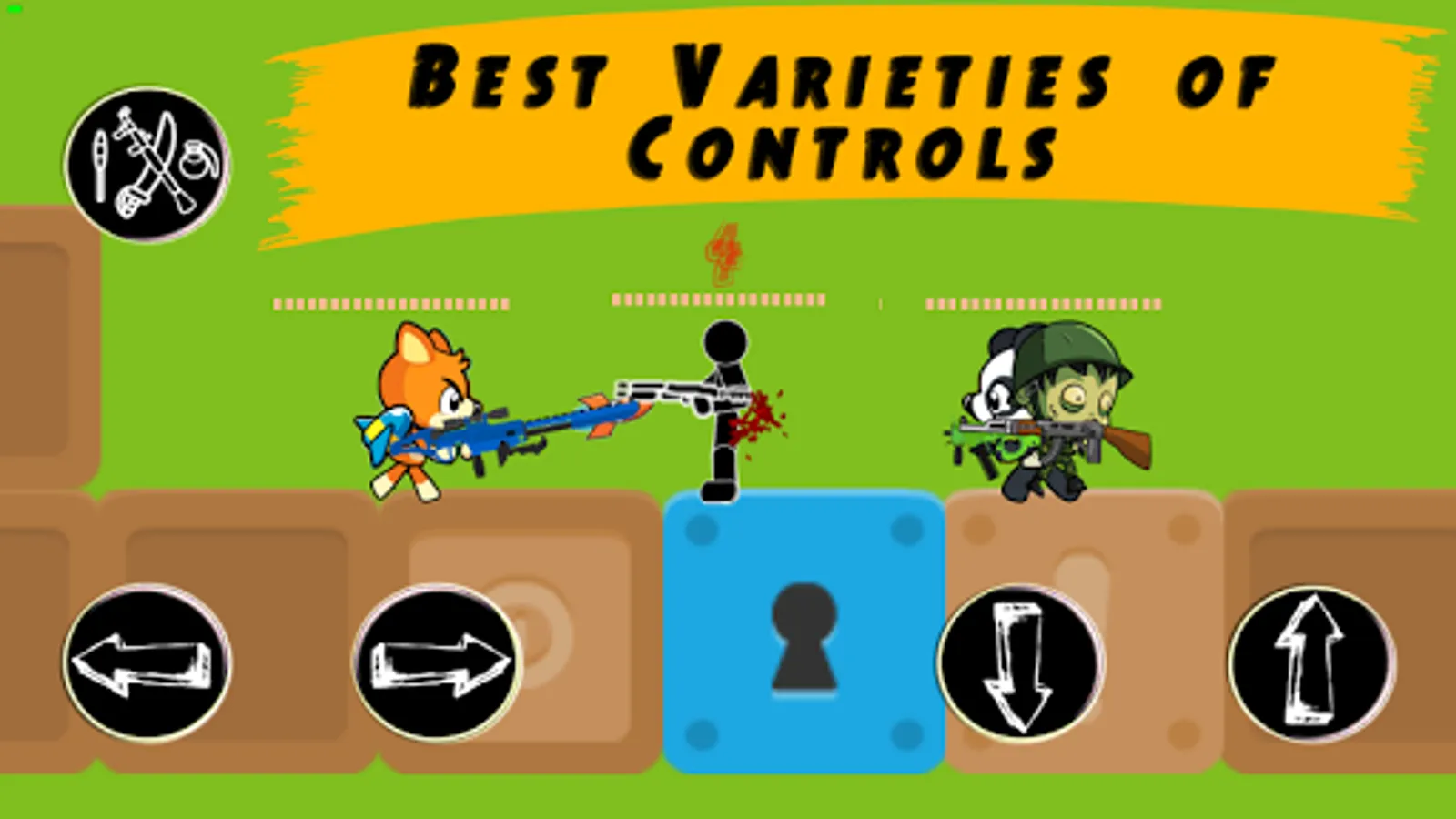 2)select a character(cats, zombies, Stickmans, pandas, and ninjas)