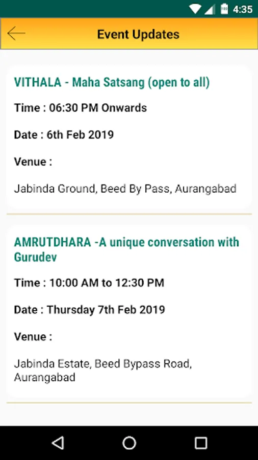 This is the official application developed for Art of Living Aurangabad. Currently, the app provides M-pass for the Satsang event at Aurangabad in February 2019. The AOL Abd app will keep getting further updates as and when needed.