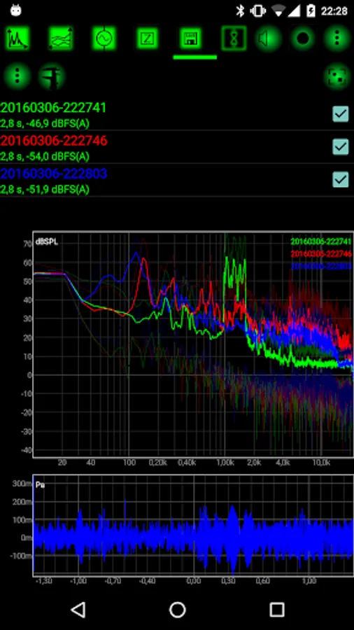 * Store multiple sets of up to 4s of Audio Signal and compare the spectra and the time signals