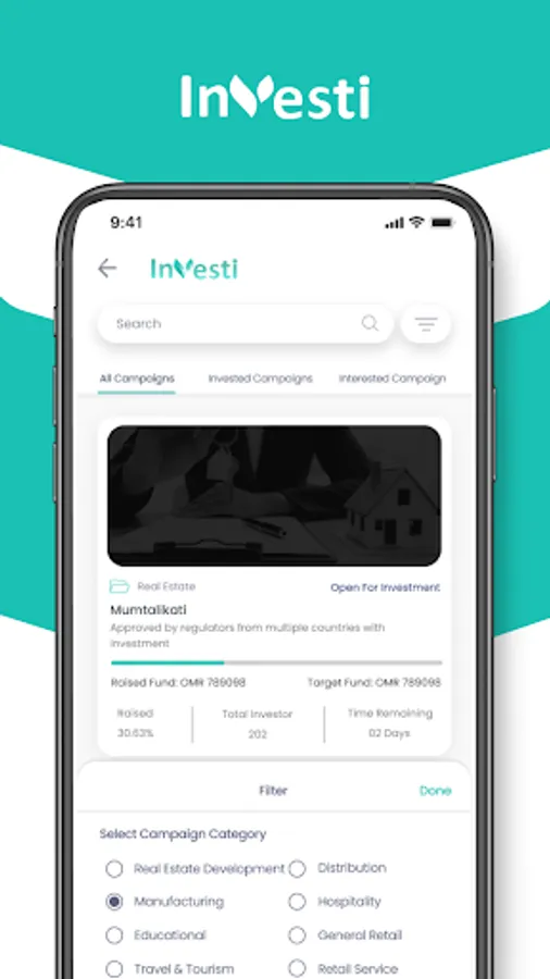 ● Investi's cutting-edge technology enables transparent and secure transactions, making it easier to launch and invest the campaigns successfully.