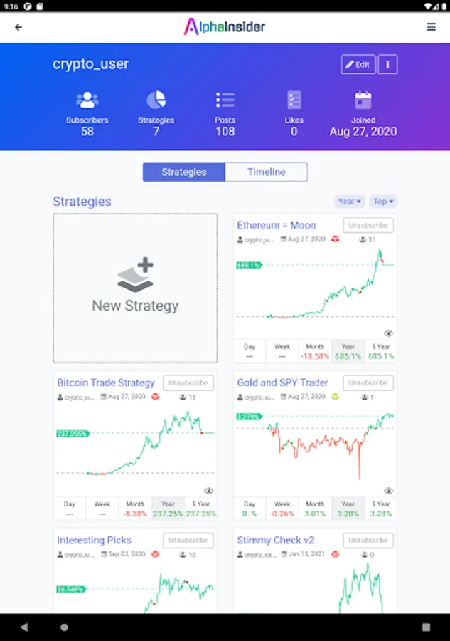 Find trading strategies that work. Compete to be the best trader. Live updates on trades and activity. Search, filter and compare strategies. Get performance proven insight from top traders.