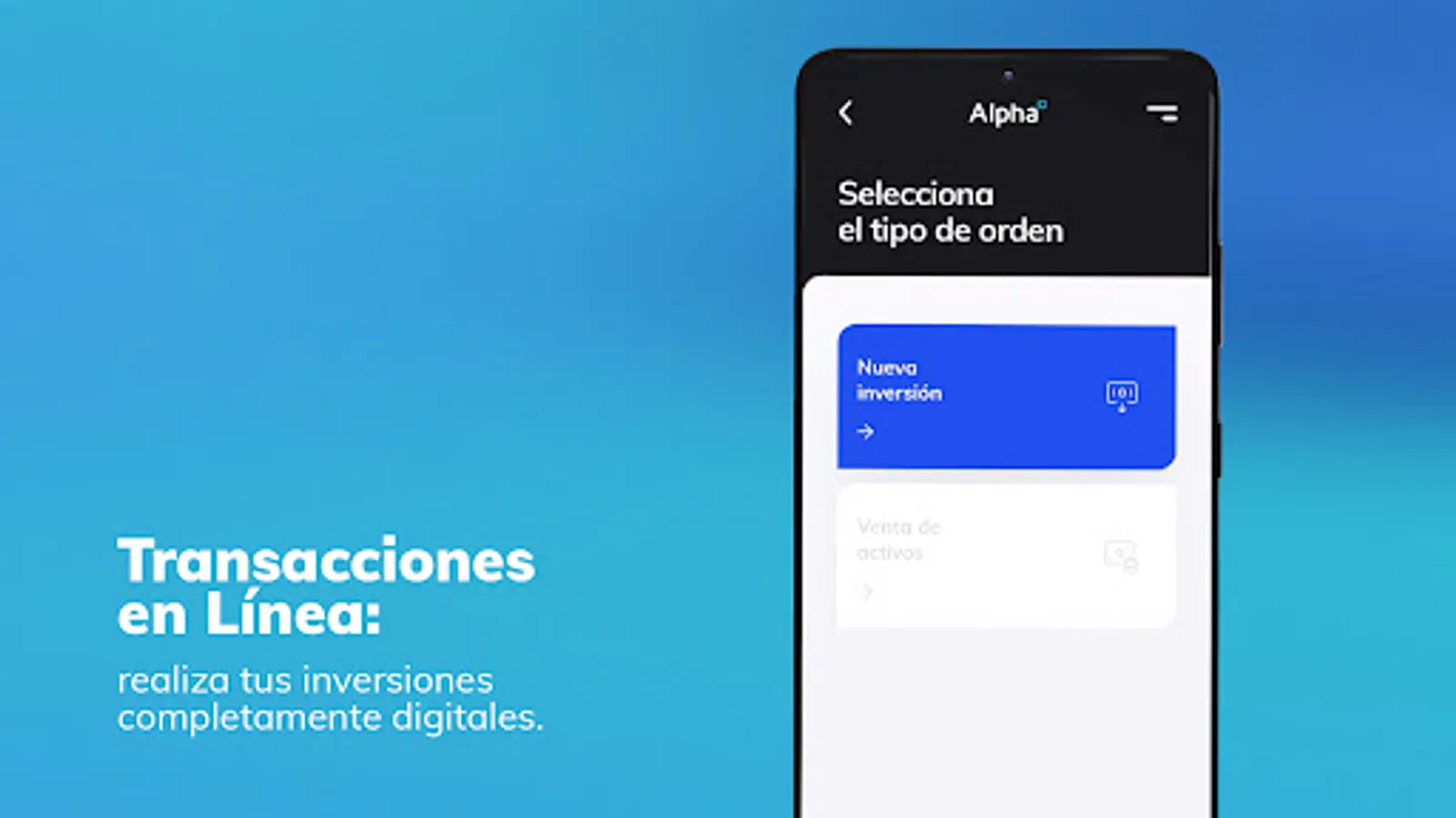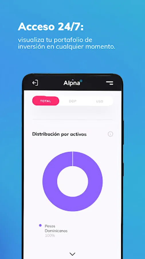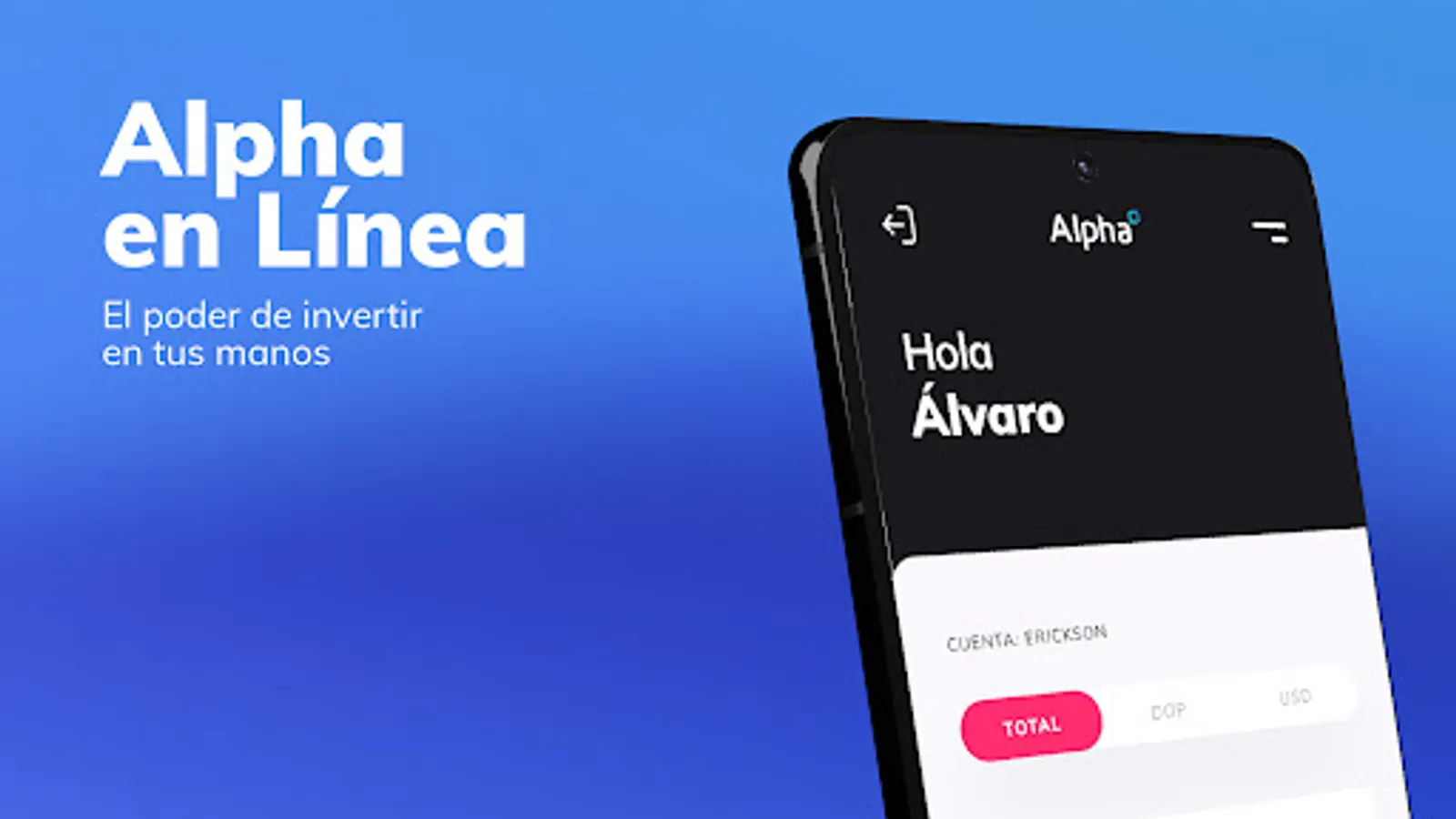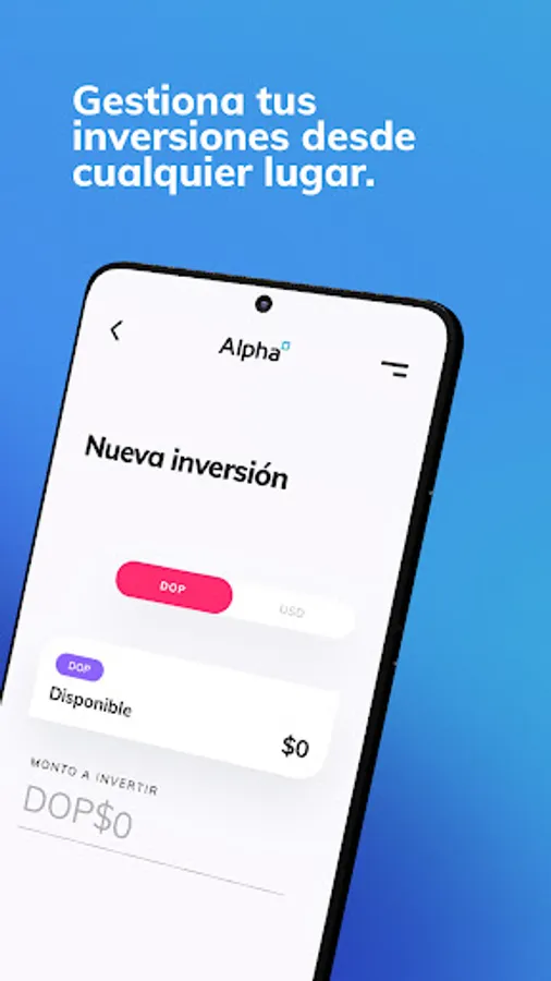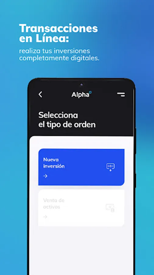 The Alpha Inversiones app offers easy access to the Dominican stock market through a simple, safe and functional tool for self-management of our clients. Alpha Online allows our clients to manage their investments, check their trading history and account status, evaluate investment opportunities and access their personal information at all times.