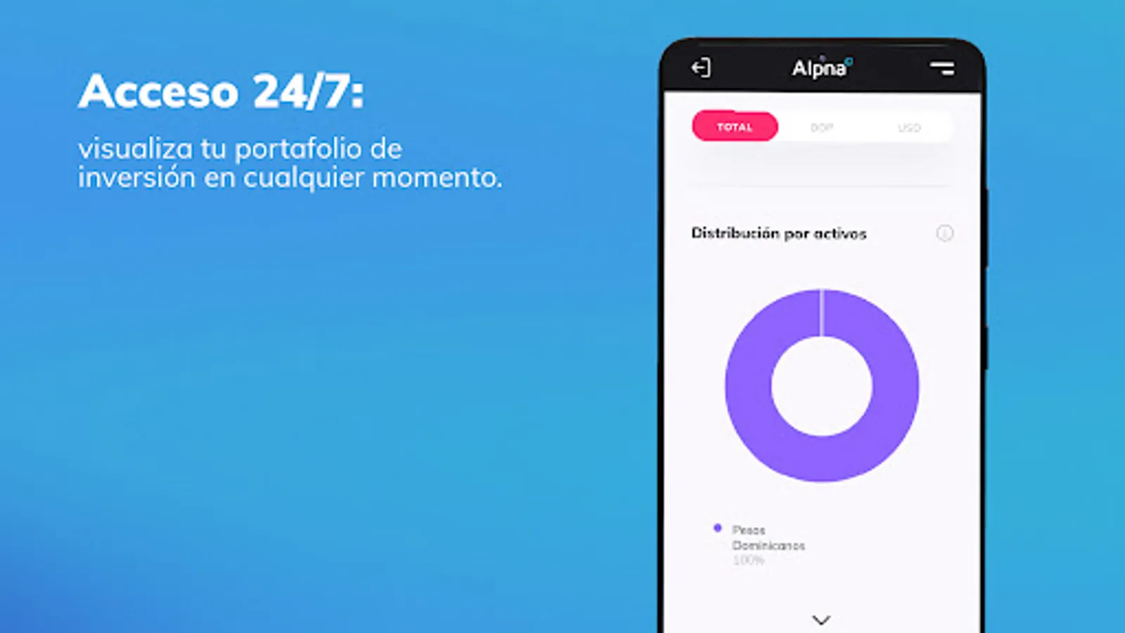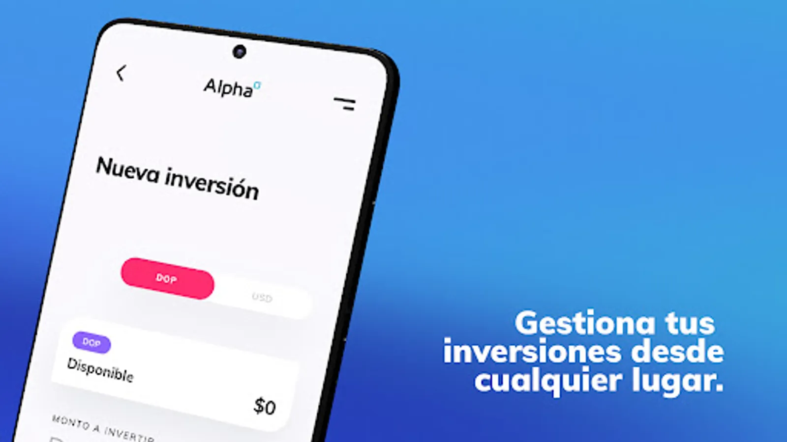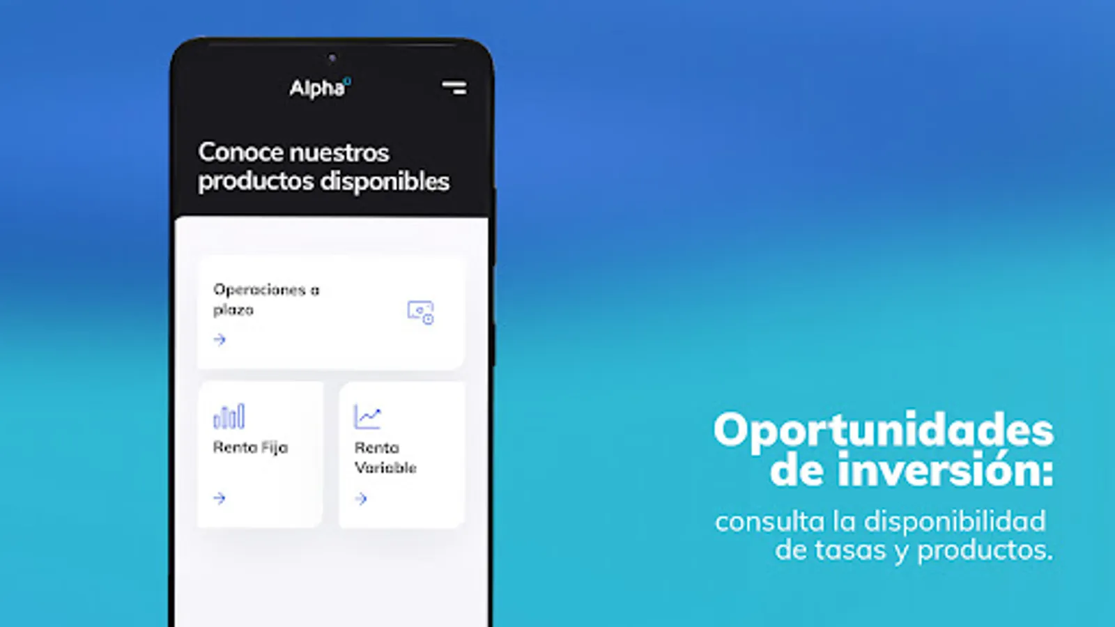The Alpha Inversiones app offers easy access to the Dominican stock market through a simple, safe and functional tool for self-management of our clients. Alpha Online allows our clients to manage their investments, check their trading history and account status, evaluate investment opportunities and access their personal information at all times.