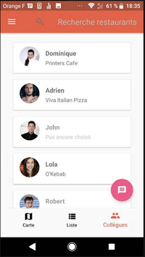 The Go4Lunch application is a collaborative application used by all employees. It allows you to search for a restaurant in the area, then select the one of your choice by sharing it with your colleagues. In the same way, it is possible to consult the restaurants selected by colleagues to join them. A little before lunchtime, the application notifies the various employees to invite them to join their colleagues.