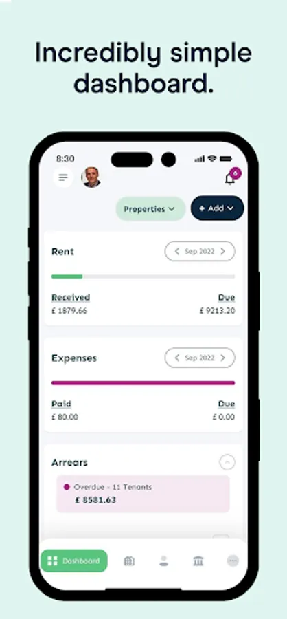 Connect your bank account and monitor rents, arrears, tasks, tenants, suppliers and more.