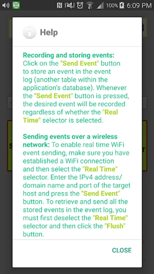 Flush: All stored events will be sent at once to a UDP server specified by a host IPv4 address and port number.