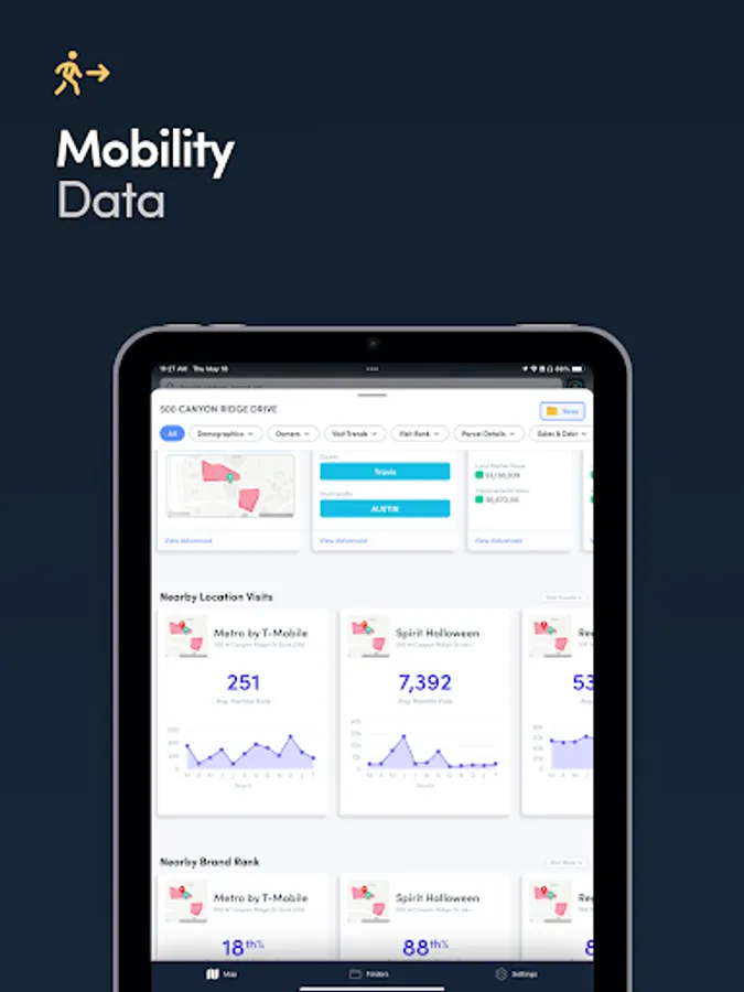 Getting accurate, actionable property data is now easier than ever. You’ll have access to everything from property records and parcel data to zoning maps and foot traffic counts.