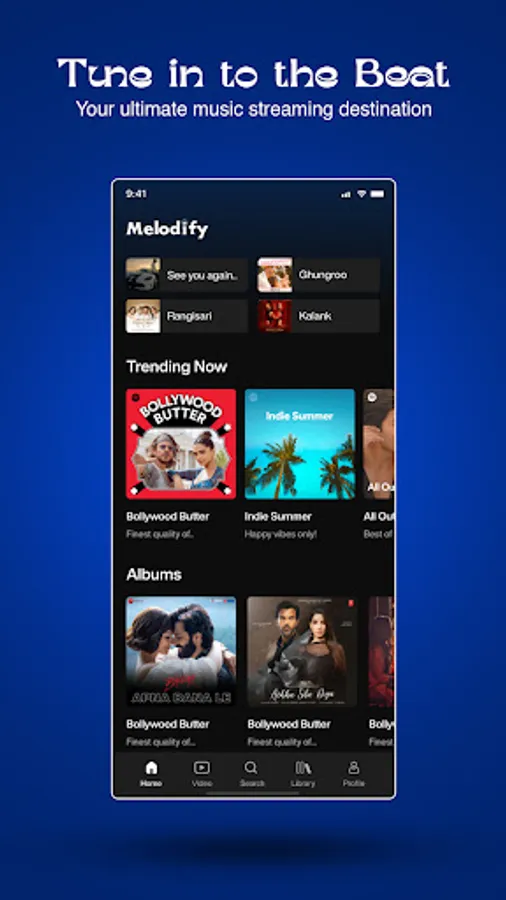Melodify is an On-Demand Music Streaming Platform. The content creator can upload the music from the panel and the user can listen to the audio from their app.