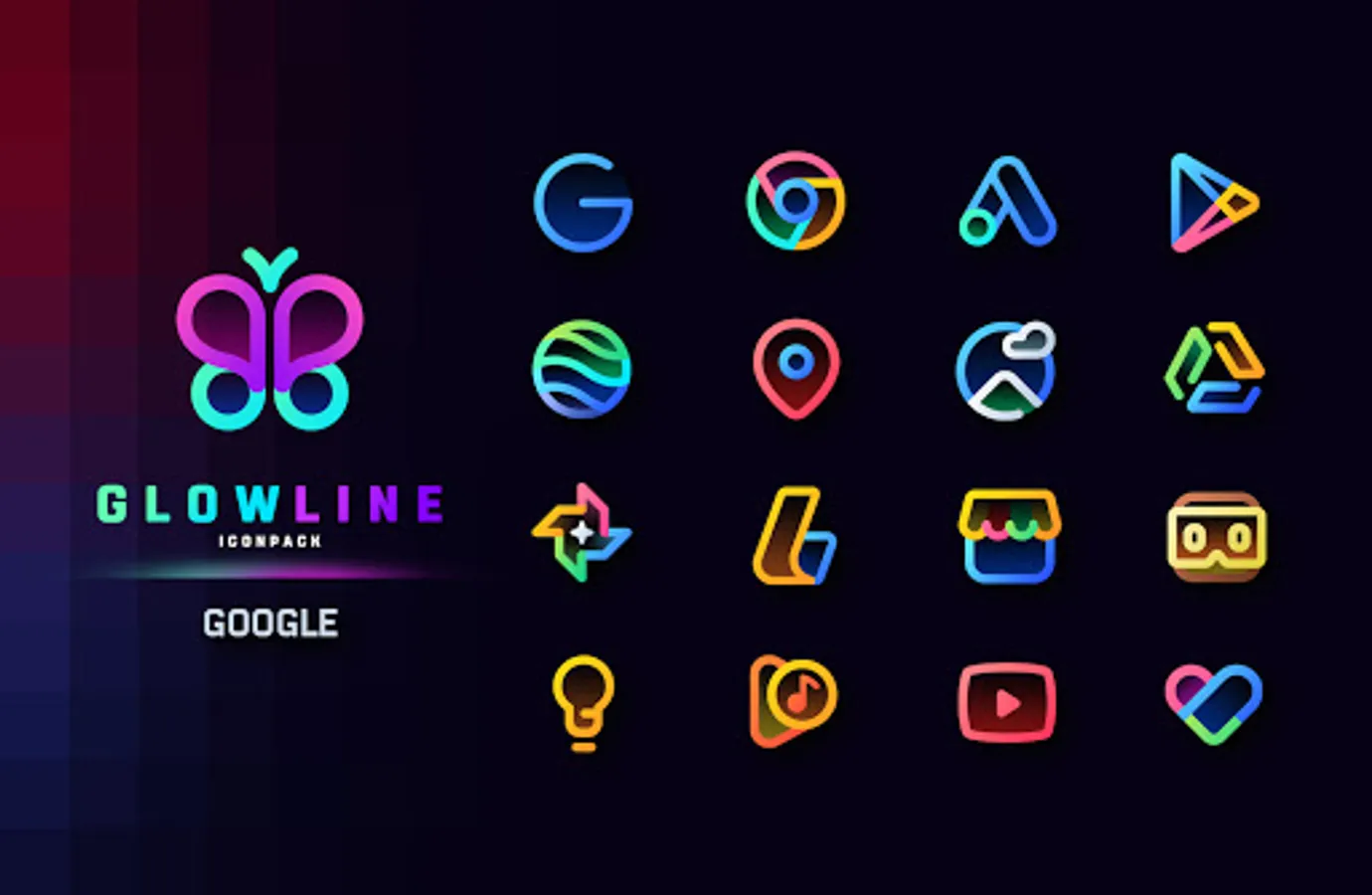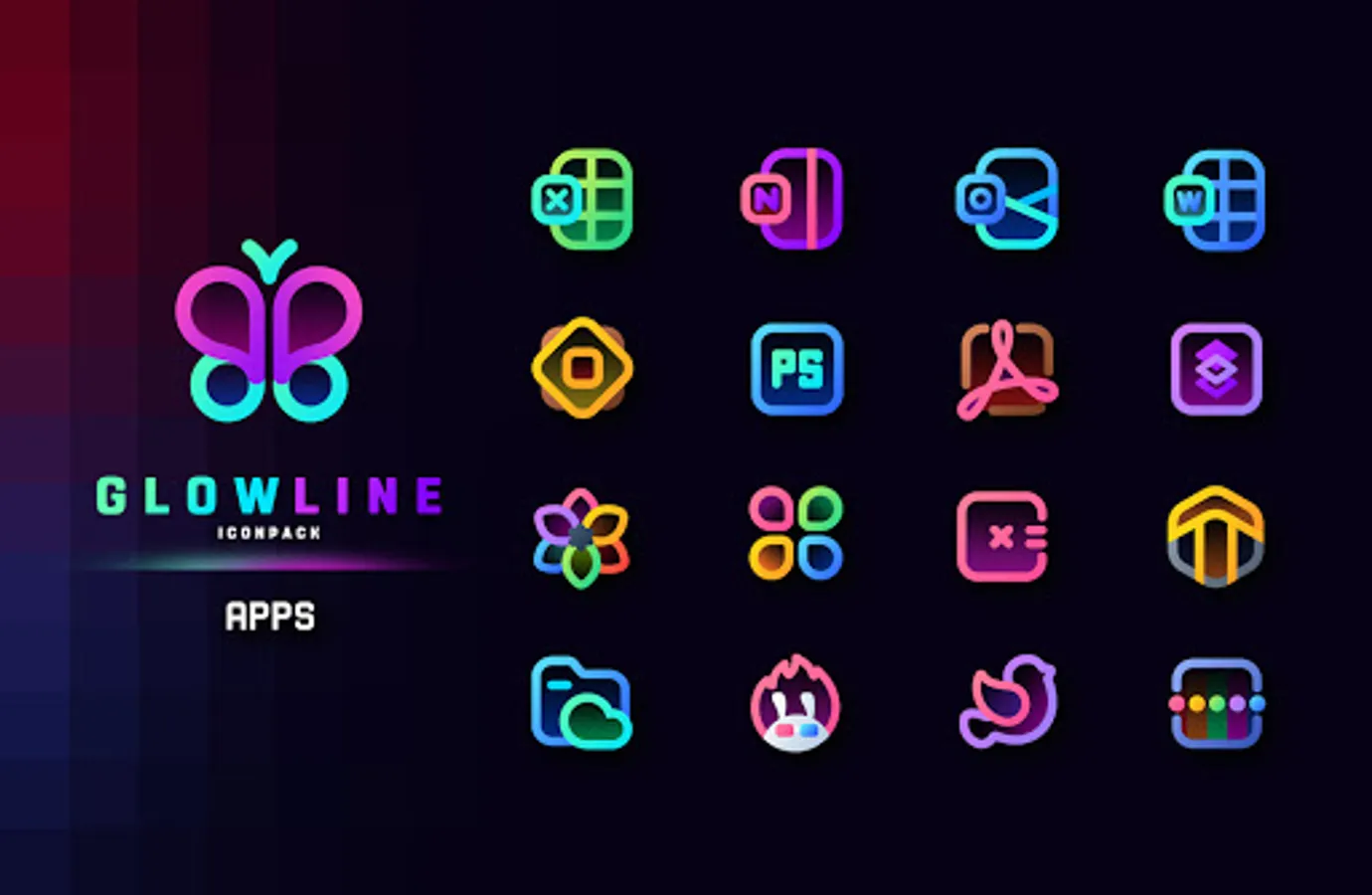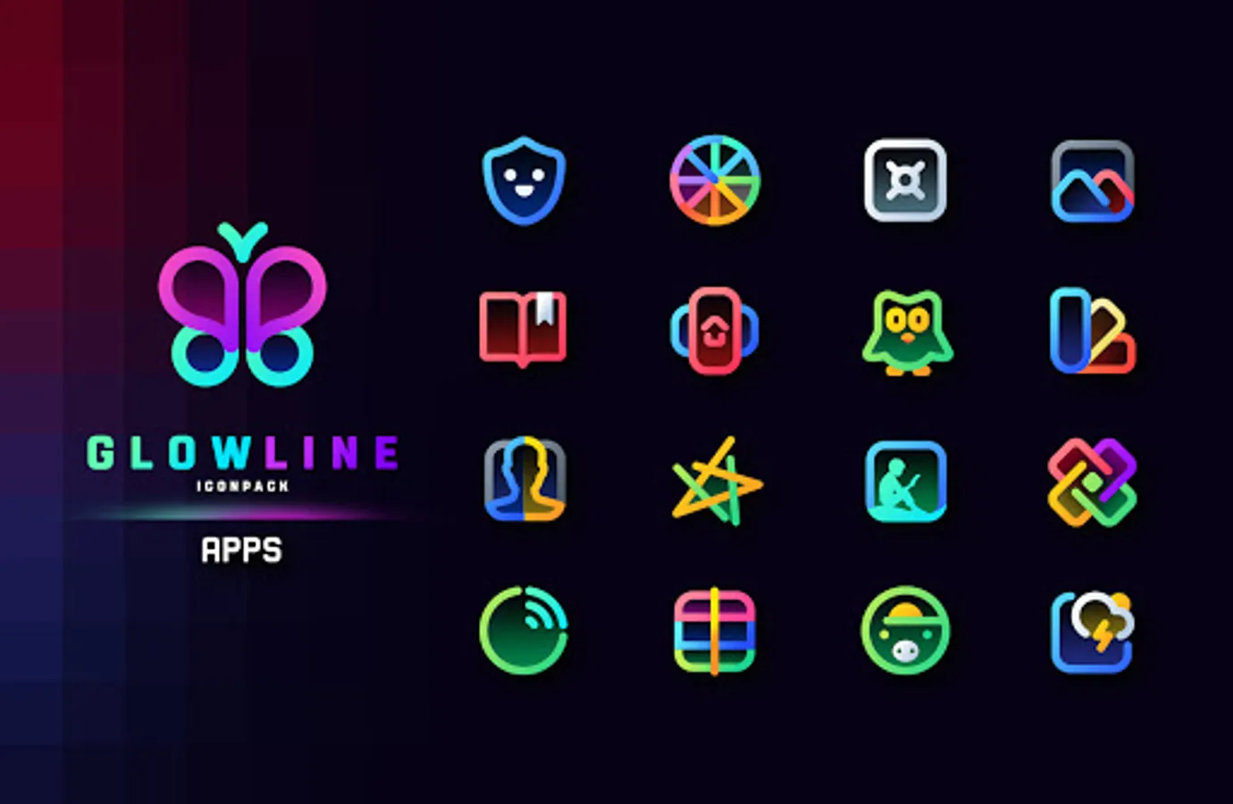 GlowLine Icons made of colorful linear linese with beautiful glow inside. and its extremly beautiful and eye-catching for both dark and Light setups. and it looks extra amazing on dark and Amoled homescreen.