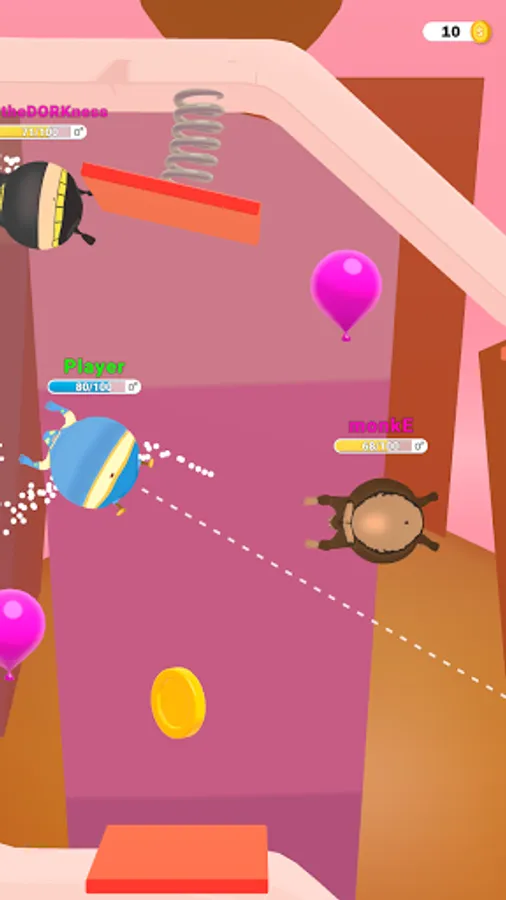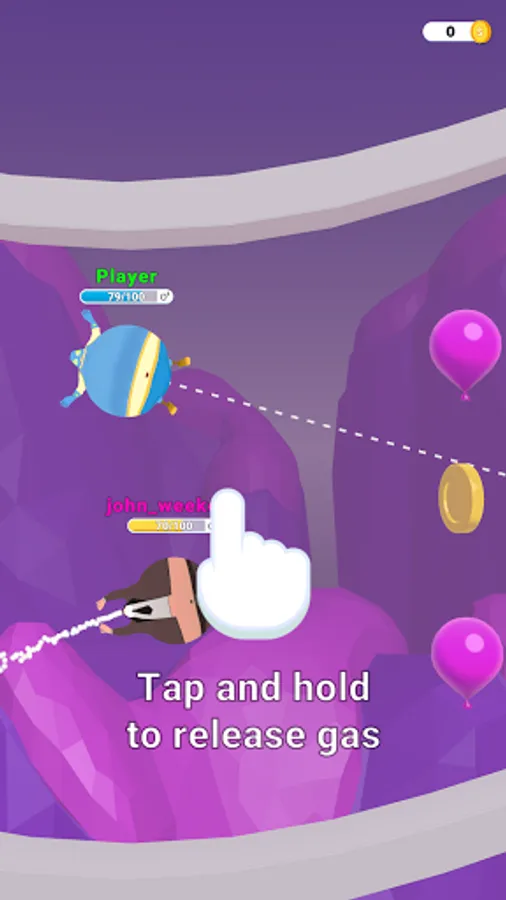 Pump yourself up with air, blow air to move around, navigate obstacles, collect air balloons and coins, and win the race!