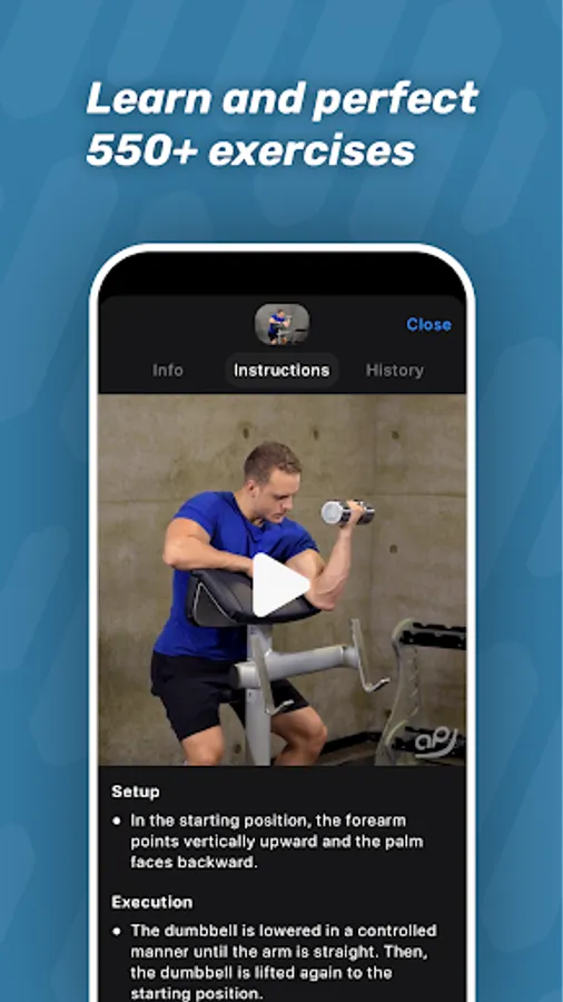 With our extensive library of 450+ exercise videos, you'll learn and perform each exercise with precision and safety. With our exercise evaluations you'll gain insights into the muscle building & strength training potential of each exercise. Categorized by targeted muscles and equipment, you’ll always find ideal gym workout programs.