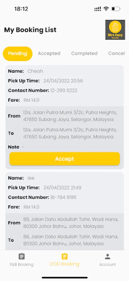 DOD is Driver On Demand service offered by MrsEasy.