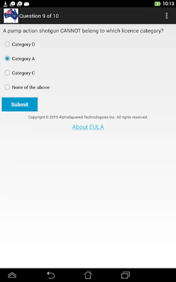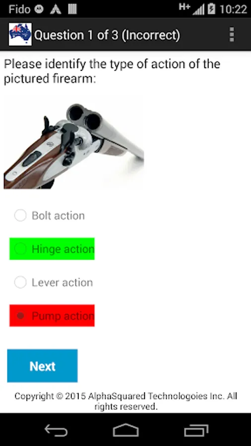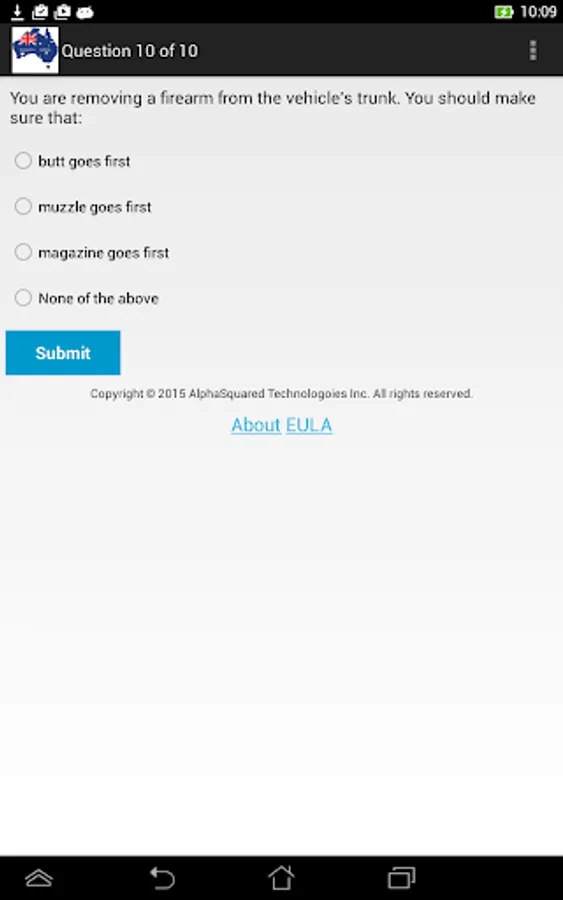 In Australia to get your gun license you have to pass a Firearm Safety Course (or Firearm Awareness Test) as a part of licencing process. To help you not to get stuck with theory (unknown terms, basics of gun laws and safety) and to get the hang of what real exam is (at least what's needed in practice), we have created this quiz application.