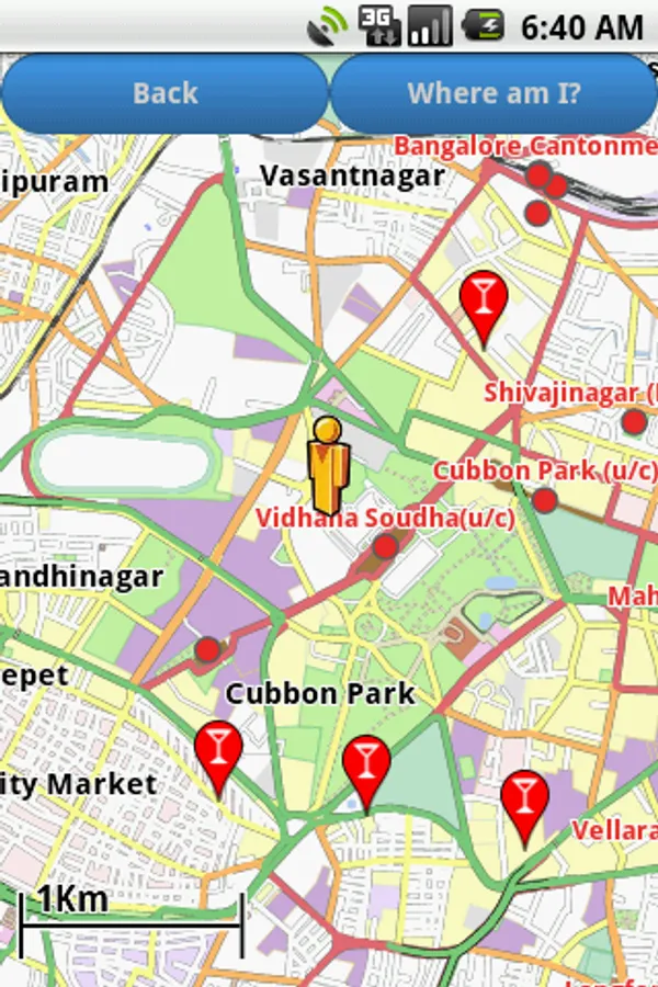 Not in Bangalore yet? The App automatically switches to simulation mode. 'Fly' to any place on the map and discover the available amenities before you go there!