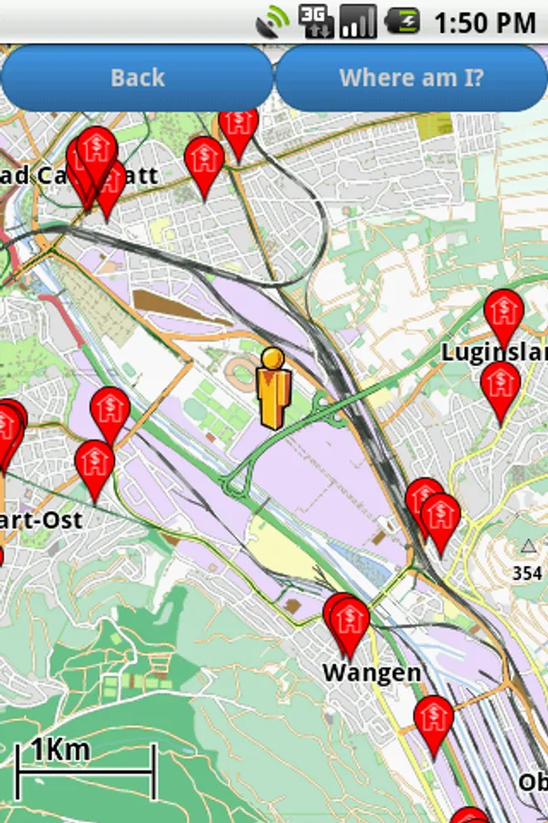 Not in Stuttgart yet? The App automatically switches to simulation mode. 'Fly' to any place on the map like Superman and discover the available amenities before you go there!
