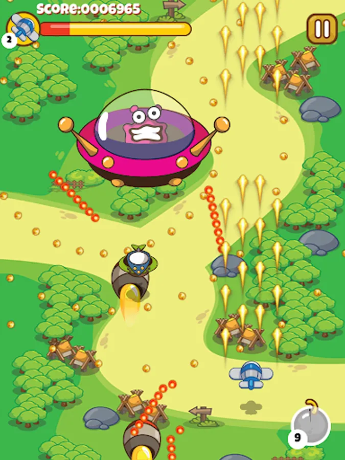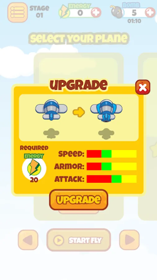 You as a player can control the steampunk plane and fight with waves of enemies flying at you. Avoid their attack! Shoot and drop the bomb to kill the enemy as many as you can. Gather enough energy so that you can upgrade your plane, or unlock more powerful new planes. Drag the plane to move, double-click or press the bomb icon to use the bombs.