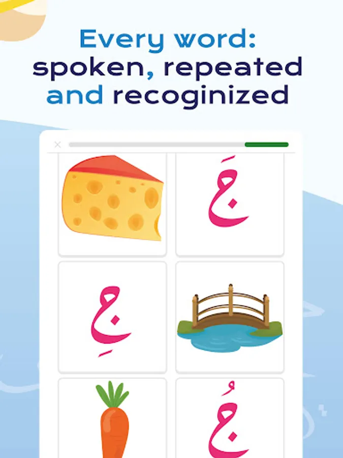 3. Cutting-edge speech recognition: Amal is the first app to include its own Speech Therapy track, using interactive characters such as Amal, Hamza, Jad, and Bassam. The app tracks your child's progress in real-time and highlights any mistakes for personalized learning.