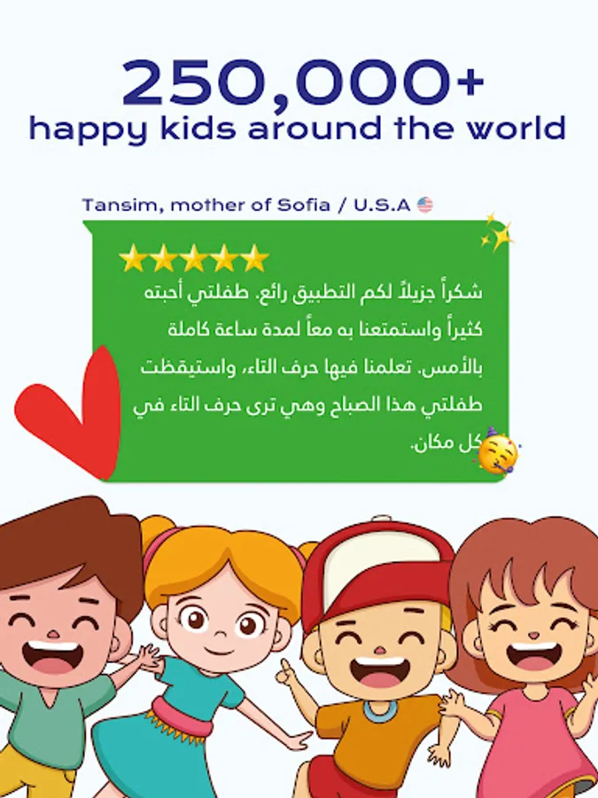 Introducing Amal, the leading app in Arabic language learning for kids aged 3 to 12. Amal offers a comprehensive and personalized learning experience through its innovative approach to teaching. With more than 10,000 words and sentence structures, your child will learn the Arabic language through gamified and interactive stories, dialogues, and skills.
