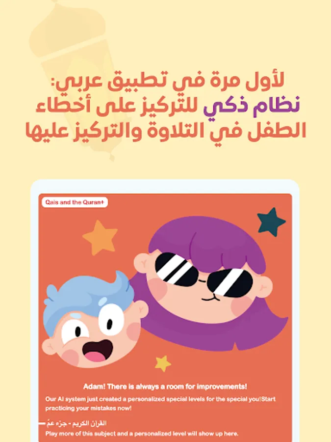 With an application that is the first of its kind in teaching, reciting and memorizing the Noble Qur’an for children using artificial intelligence techniques and games for the first time in the Arabic language in teaching the Noble Qur’an, Soraya Al-Quran application is in your hands.