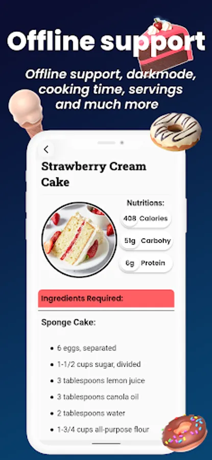 All the recipes in our app are simple. and very easy to cook. You can make any cake by following some easy and simple steps.