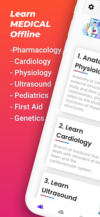 Studying Medical isn't easy now a days, and it often represents a big financial and time investment. But the benefits are definitely worth it. Medical jobs have remained attractive throughout time for a reason. That's the only reason Alpha z Studio brings you our Learn Medical Offline | Medico app. which provides you simple and detailed lectures of Anatomy, Cardiology, Ultrasound, Pharmacology, Pediatrics, FirstAid, Physiology and genetics.