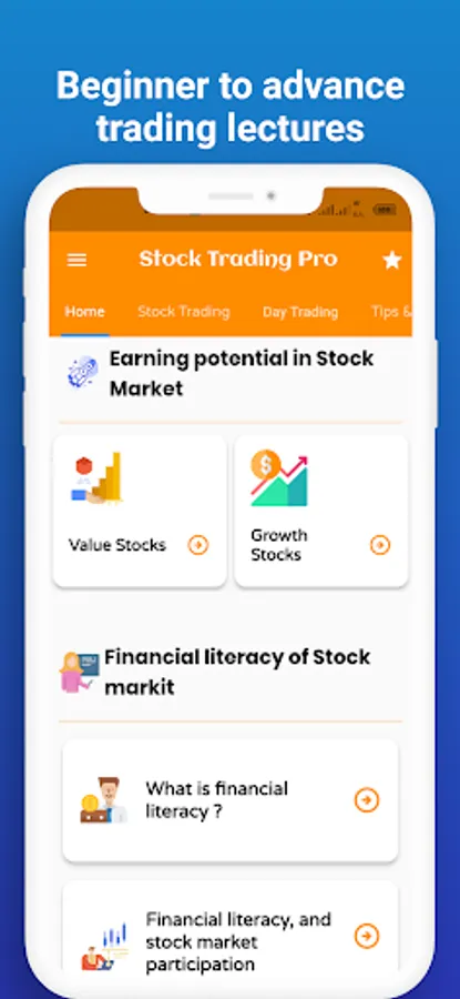 stock trading in a very easy and simple way. Now a days trading is much famous in all over the world. And this app will help you to learn all the tips and tricks about trading.