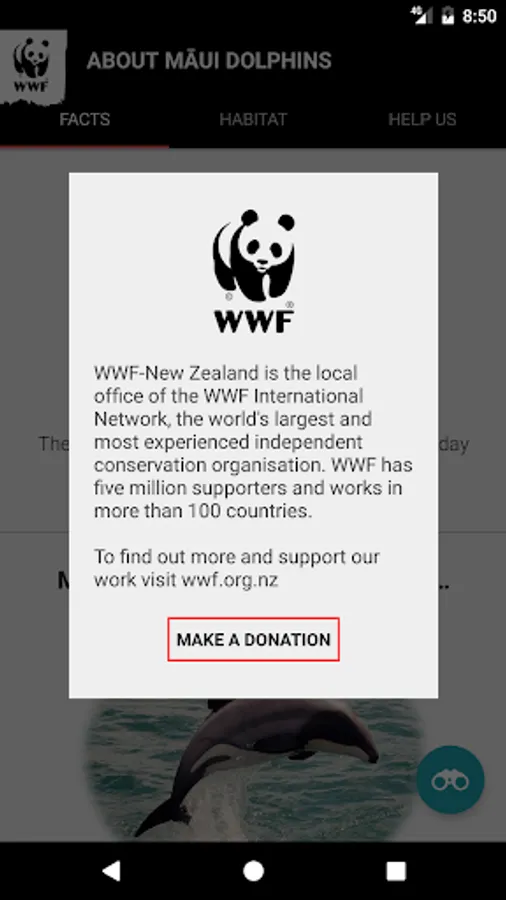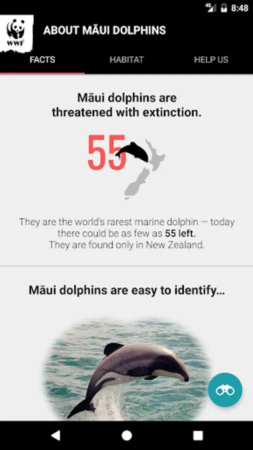 WWF-New Zealand and Alphero teamed up to deliver this beautiful, interactive guide. It helps users identify a Māui dolphin and understand more about this iconic species, while making it easier to report a sighting so that information on their habitat can be collected, and their habitat protected.