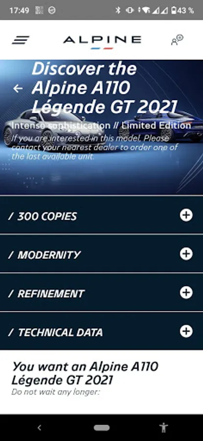 This Application dedicated to Alpine Universe enables you to book your Alpine A110 and to be informed of the latest news concerning Alpine.